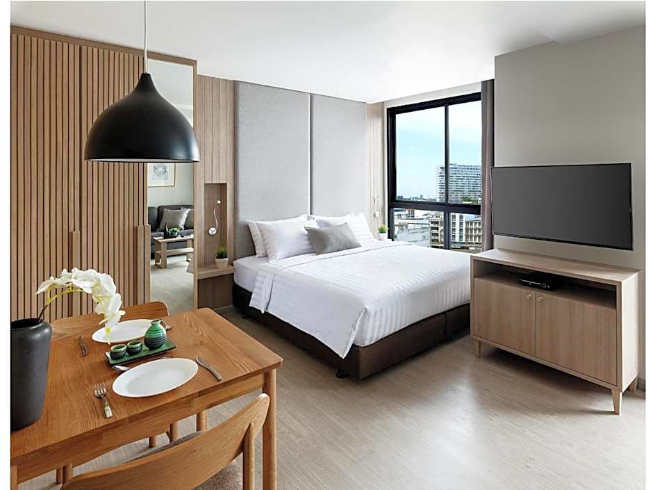 The spacious suite features 1 bedroom and 1 bathroom with a bath and free toiletries. The fully equipped kitchen has a stovetop, a refrigerator, kitchenware and a microwave. The air-conditioned suite provides a flat-screen TV with cable channels, a mini-bar, a tea and coffee maker, a seating area as well as city views. The unit offers 1 bed.